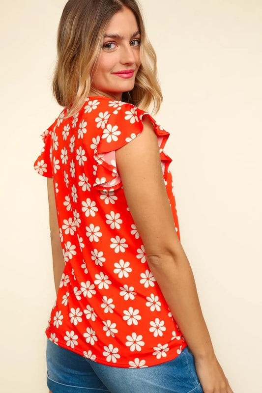 Haptics Full Size Frill Floral Puff Sleeve Blouse