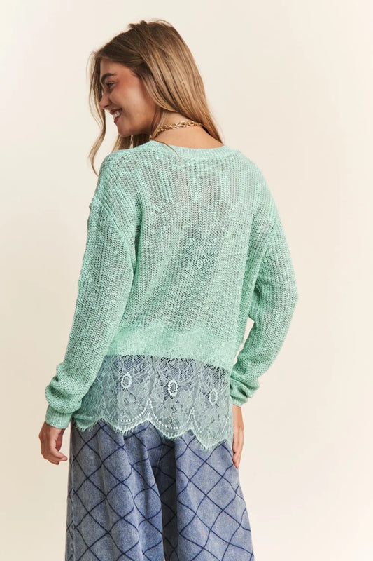 J.NNA Lace Detail Long Sleeve Knit Top